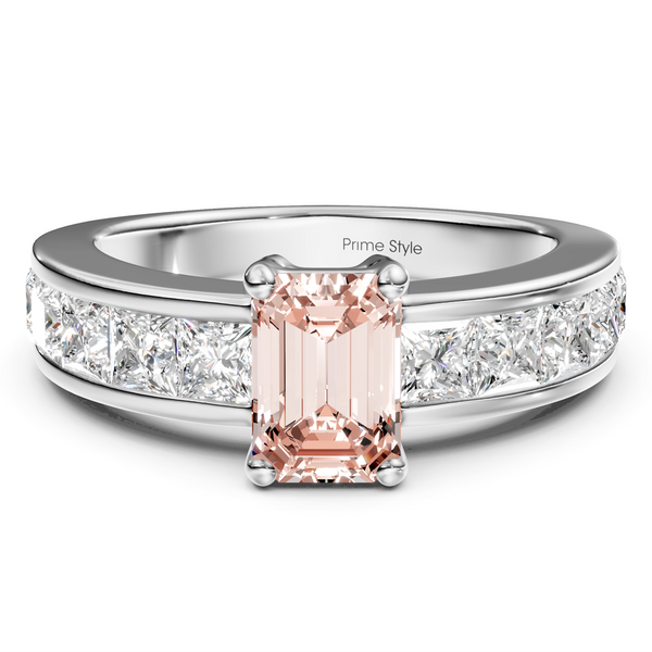 Fall in love with this 2.50-5.50 CT Emerald & Princess fancy pink lab grown diamond engagement ring. Each stone is hand-selected for vibrant color and brilliant fire, giving you a romantic look that stands out from traditional white diamonds.