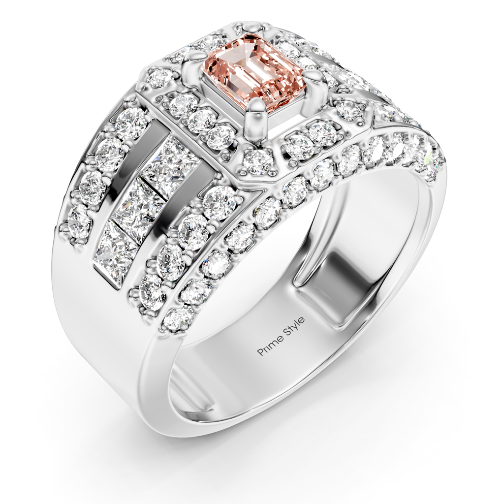 Fall in love with this 2.70-5.70 CT Emerald & Round fancy pink lab grown diamond engagement ring. Each stone is hand-selected for vibrant color and brilliant fire, giving you a romantic look that stands out from traditional white diamonds.