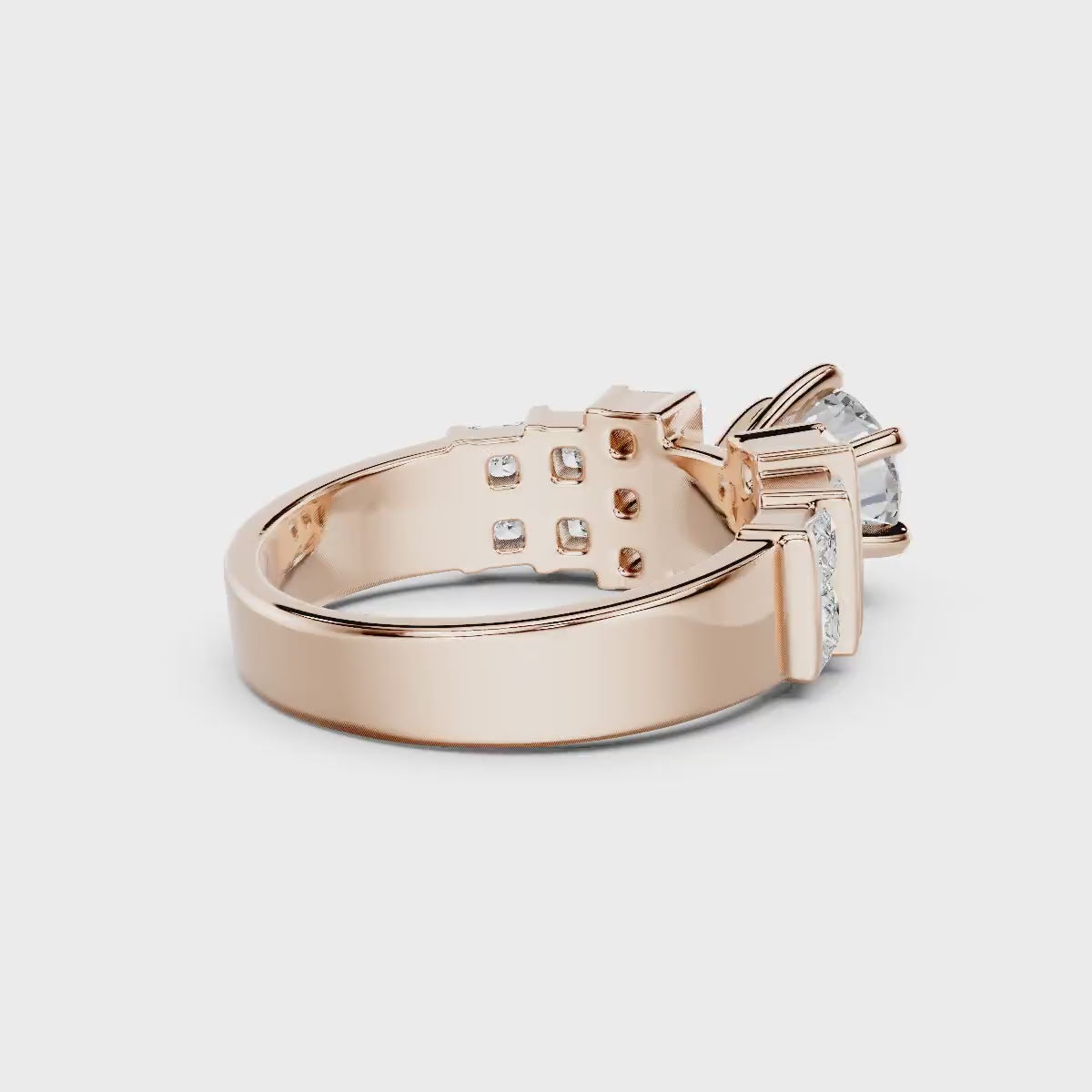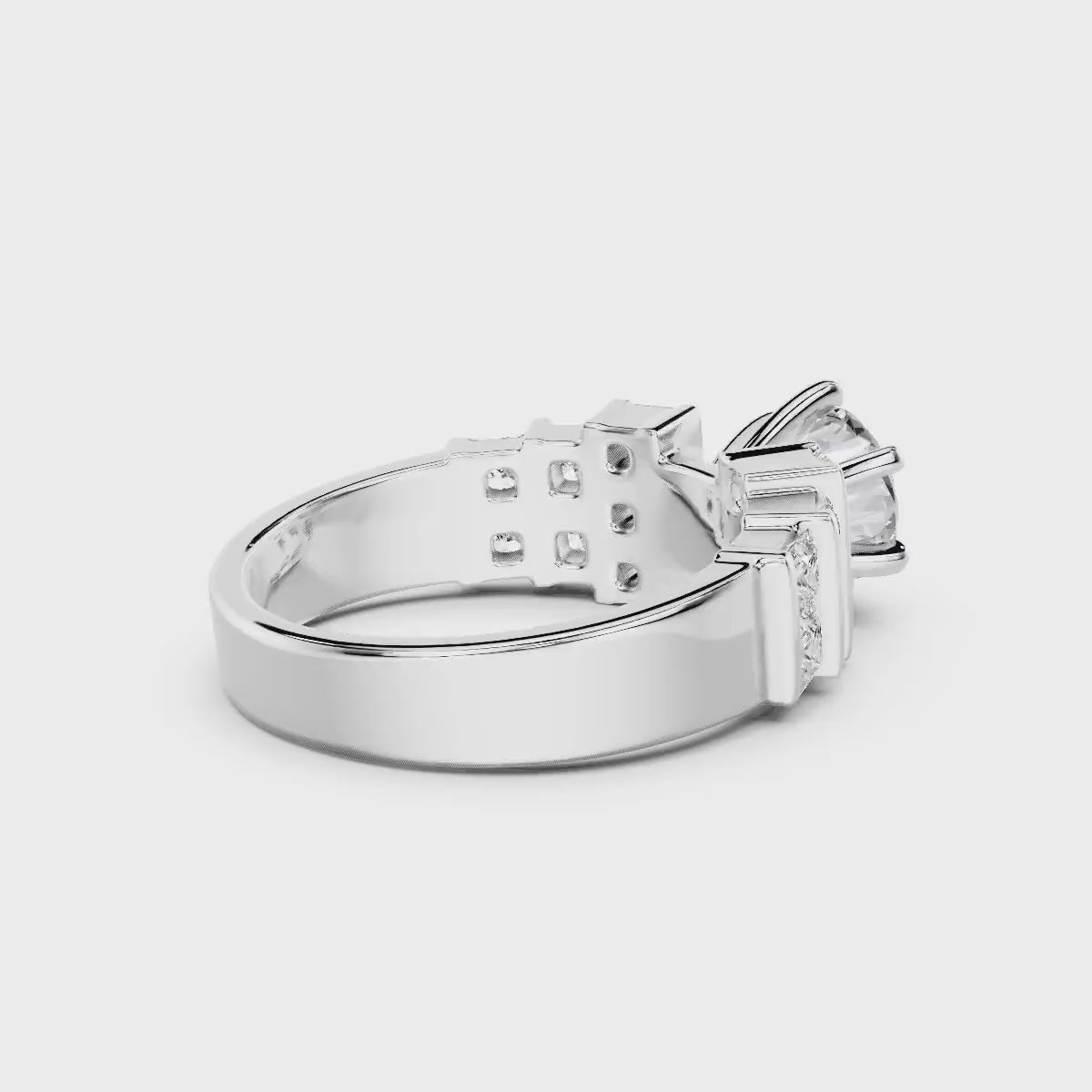 - Side Stones 1: 14 Princess Cut lab grown diamonds weighing 1.20 carat