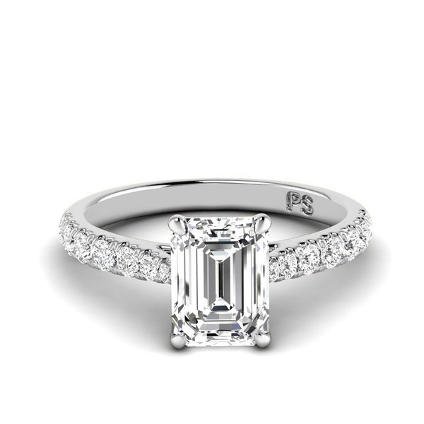 Step into sophistication with this 0.85-6.35 CT Emerald & Round Cut Lab Grown diamonds featuring a beautiful center stone. The 14kt, 18kt, and platinum setting provides the perfect foundation for the lab-grown diamonds to showcase their natural beauty. PrimeStyle's commitment to affordable luxury means you can enjoy exceptional craftsmanship in this engagement ring without the designer price tag.