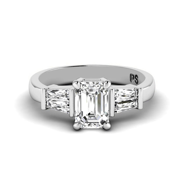 Step into sophistication with this 0.90-6.40 CT Emerald & Taper Cut Lab Grown diamonds featuring a beautiful center stone. The 14kt, 18kt, and platinum setting provides the perfect foundation for the lab-grown diamonds to showcase their natural beauty. PrimeStyle's commitment to affordable luxury means you can enjoy exceptional craftsmanship in this engagement ring without the designer price tag.