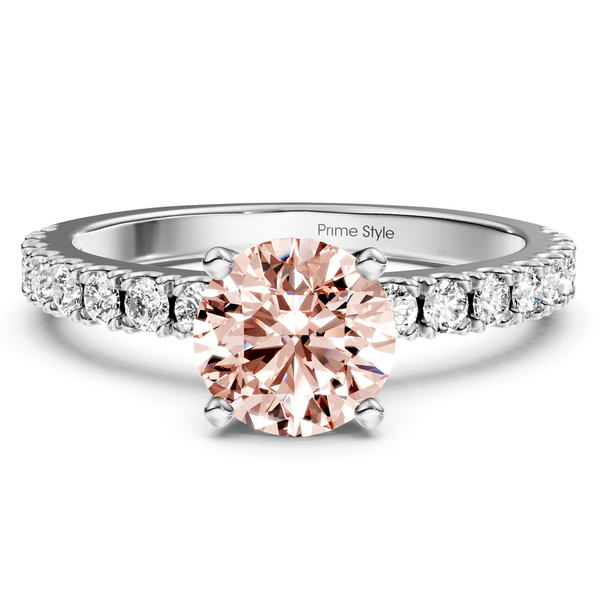 Fall in love with this 1.40-4.40 CT Round fancy pink lab grown diamond engagement ring. Each stone is hand-selected for vibrant color and brilliant fire, giving you a romantic look that stands out from traditional white diamonds.