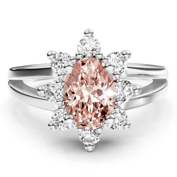 Fall in love with this 1.40-4.40 CT Oval & Round fancy pink lab grown diamond engagement ring. Each stone is hand-selected for vibrant color and brilliant fire, giving you a romantic look that stands out from traditional white diamonds.