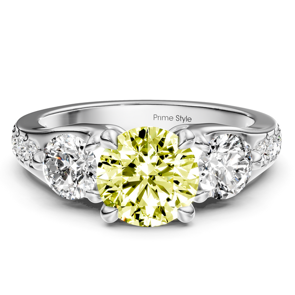 Experience the beauty of this 2.05-5.05 CT Round Fancy Yellow fancy yellow lab grown diamond engagement ring. Each stone is chosen for rich color and exceptional brilliance, offering a striking alternative to traditional white diamonds.