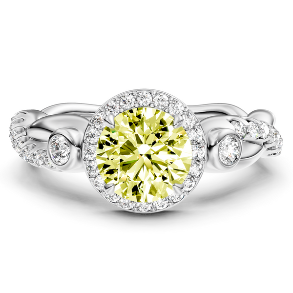 Experience the beauty of this 1.47-4.47 CT Round Fancy Yellow fancy yellow lab grown diamond engagement ring. Each stone is chosen for rich color and exceptional brilliance, offering a striking alternative to traditional white diamonds.