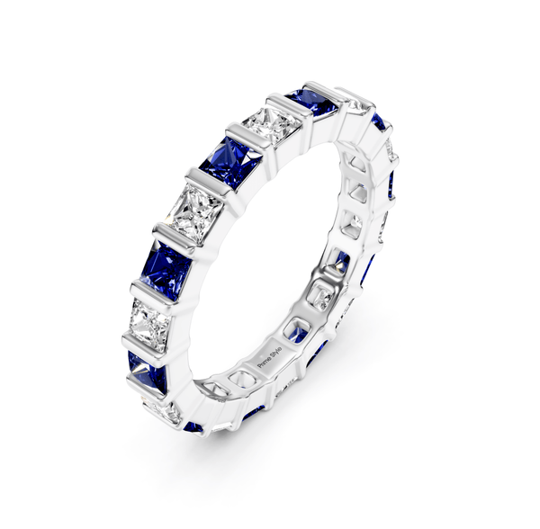 2.50 CT Princess Cut Blue Sapphires and Diamonds - Eternity Rings