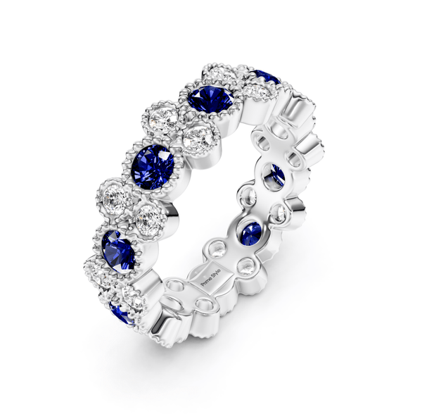 1.70 CT Round Cut Blue Sapphires and Diamonds - Eternity Rings