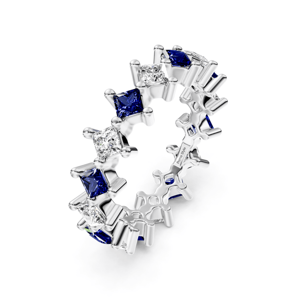 4.20 CT Princess Cut Blue Sapphires and Diamonds - Eternity Rings