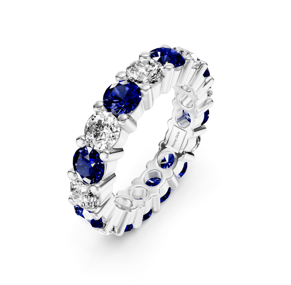 4.10 CT Round Cut Blue Sapphires and Diamonds - Eternity Rings