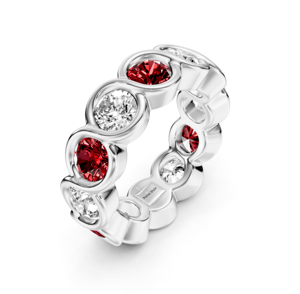 1.50-5.00 CT Round Cut Rubies and Diamonds - Eternity Rings