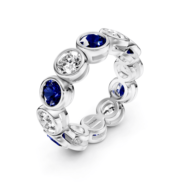 1.50-5.00 CT Round Cut Blue Sapphires and Diamonds - Eternity Rings
