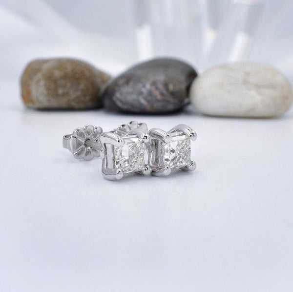 Fashionable 1.50CT (G-H in color & VS1-VS2 in clarity) Princess Cut Diamond Stud Earrings in Platinum