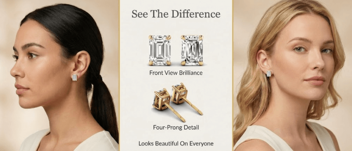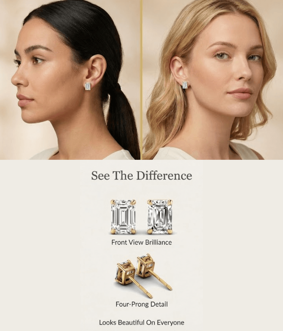 Four-Prong 0.60-5.00 CT Emerald Cut Lab Grown Diamonds - Stud Earrings