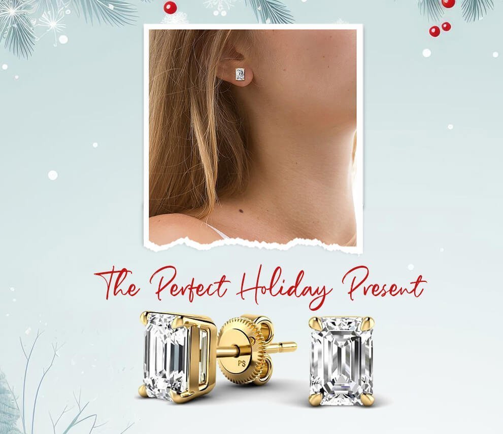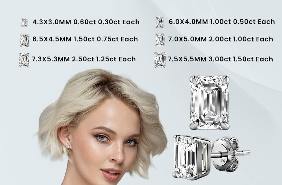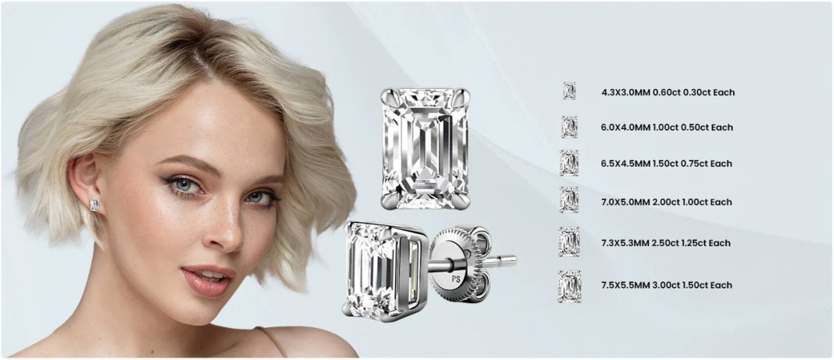 - Stunning 0.60-5.00 CT emerald cut lab grown diamonds set in a pair of elegant stud earrings.