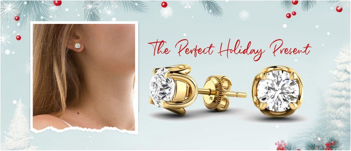 • Timeless Stud Earrings: These classic earrings featuring round lab grown diamonds offer a sophisticated and elegant look that never goes out of style.