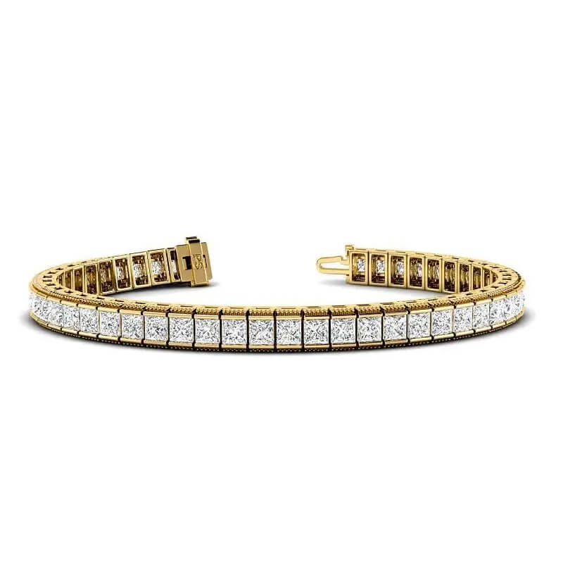 • Immerse yourself in the world of fine jewelry with this 4.00-14.50 CT Round Cut Lab Grown diamonds. Crafted in 14kt, 18kt, and platinum, the lab-grown diamonds offer exceptional sparkle that never fails to impress. PrimeStyle's dedication to quality ensures this tennis bracelet will become a treasured part of your collection.
