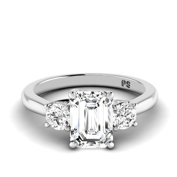 Celebrate your unique story with this 0.95-6.45 CT Emerald & Round Cut Lab Grown diamonds featuring a remarkable center stone in 14kt, 18kt, and platinum. This three stone rings features lab-grown diamonds expertly cut to maximize their natural sparkle, while the setting ensures comfort and durability. PrimeStyle delivers exceptional quality that makes every day feel special.